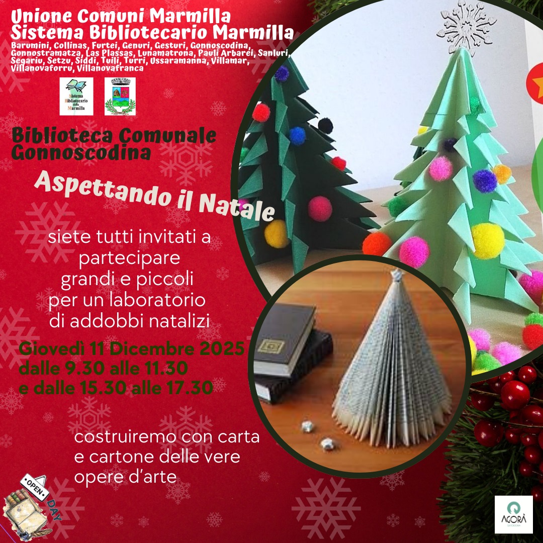 Descrizione Giovedì 11 dicembre 2025: la Biblioteca Comunale, dalle ore 9,30 alle ore 11,30 e dalle ore 15,30 alle ore 17,30, organizza un laboratorio di addobbi natalizi per grandi e piccioli.