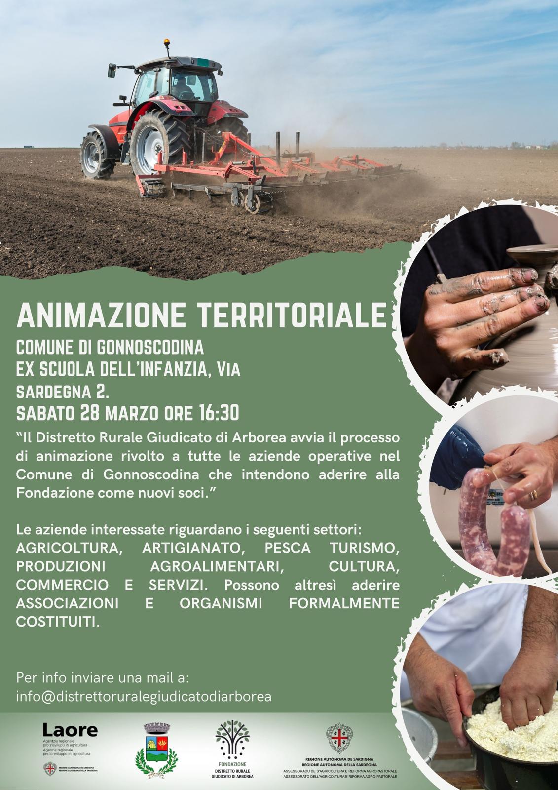 Il Distretto Rurale del Giudicato di Arborea incontra le aziende di Gonnoscodina con il supporto dell’Agenzia Laore. Si apre così un nuovo processo di animazione territoriale rivolto a tutte le aziende che operano nel territorio che intendono diventare nuovi soci della Fondazione del Distretto Rurale del Giudicato di Arborea.